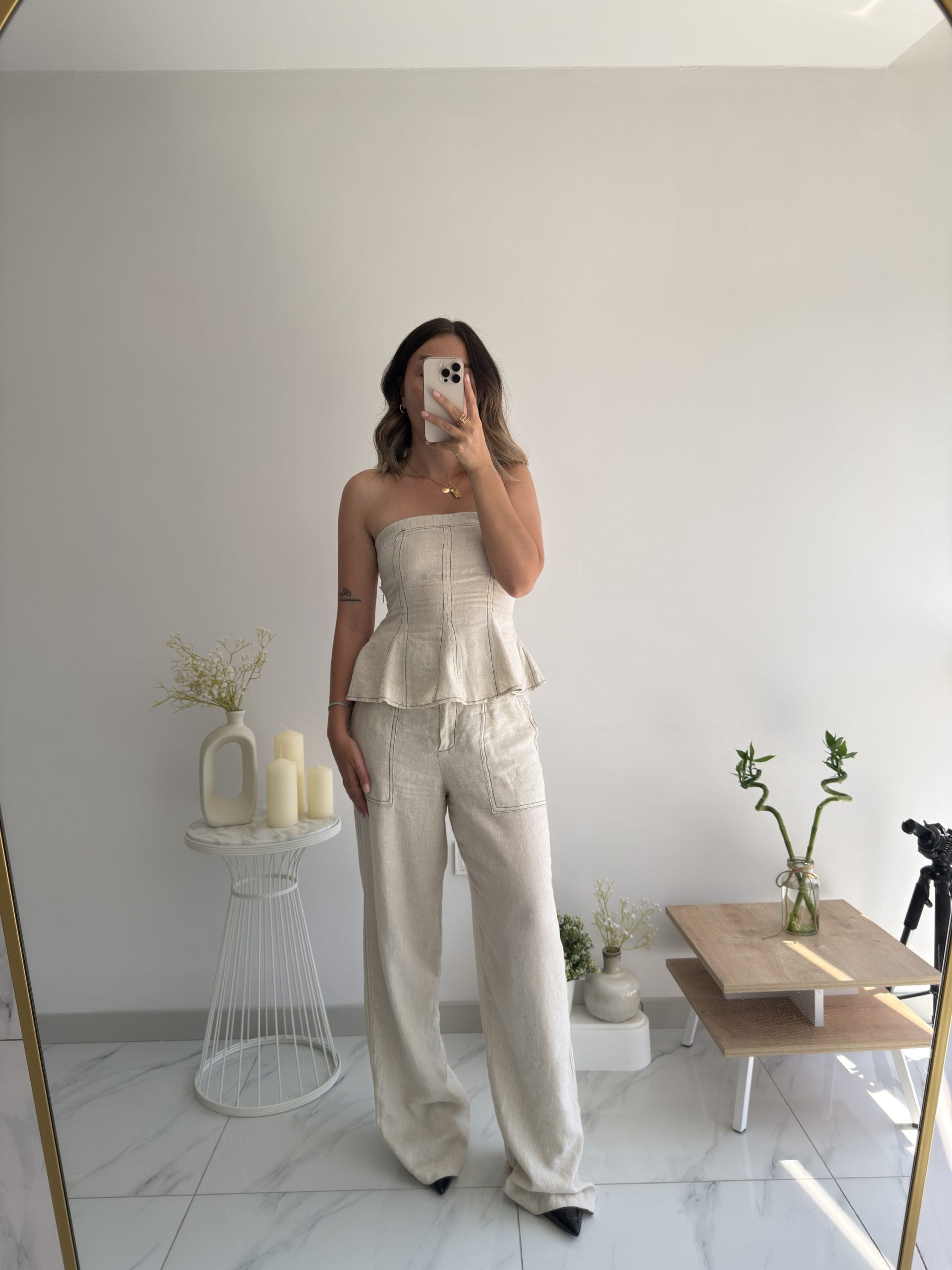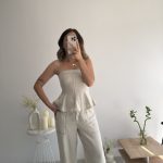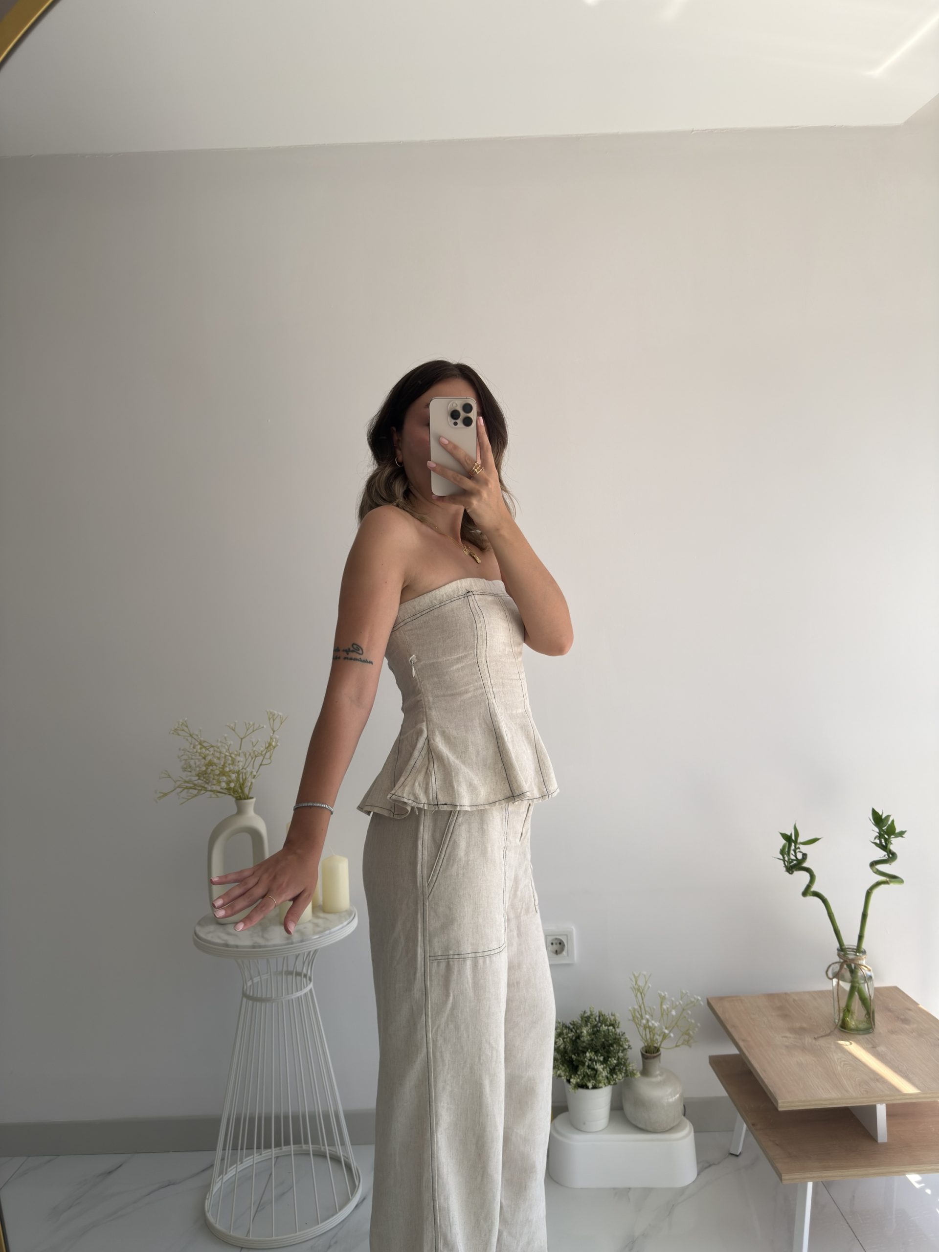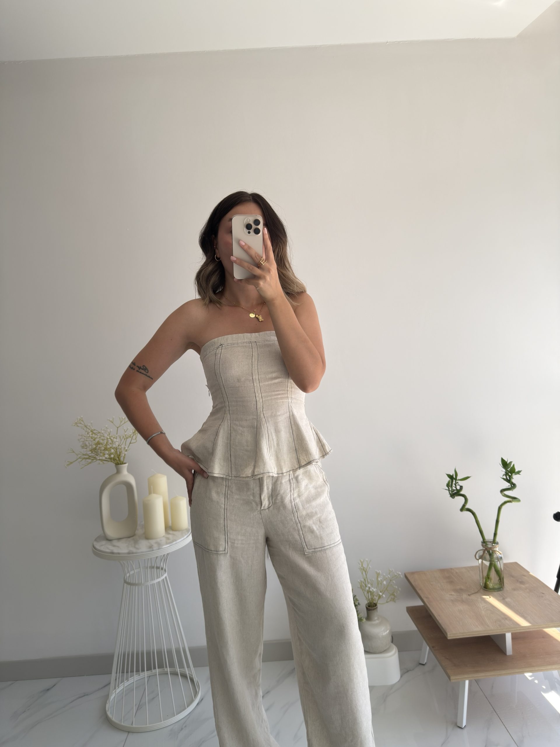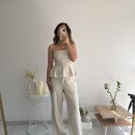 Bej keten straplez takım